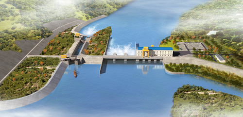 該項(xiàng)目開發(fā)以發(fā)電為主,兼顧航運(yùn)。電站為河床式,總裝機(jī)容量為40MW,安裝4臺10MW燈泡式貫流機(jī)組,額定水頭9.1m。